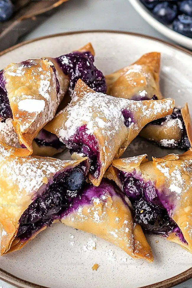 Crispy wontons filled with blueberry cheesecake create a delightful twist on traditional desserts.