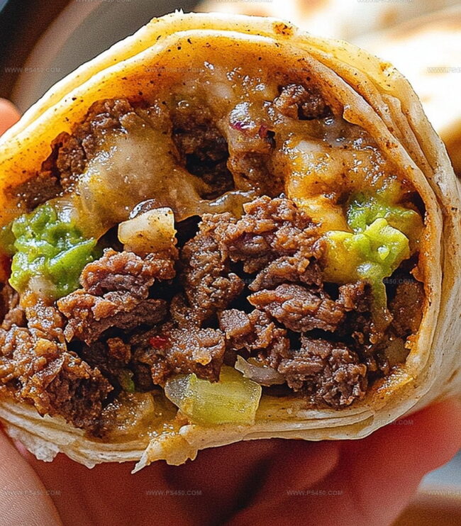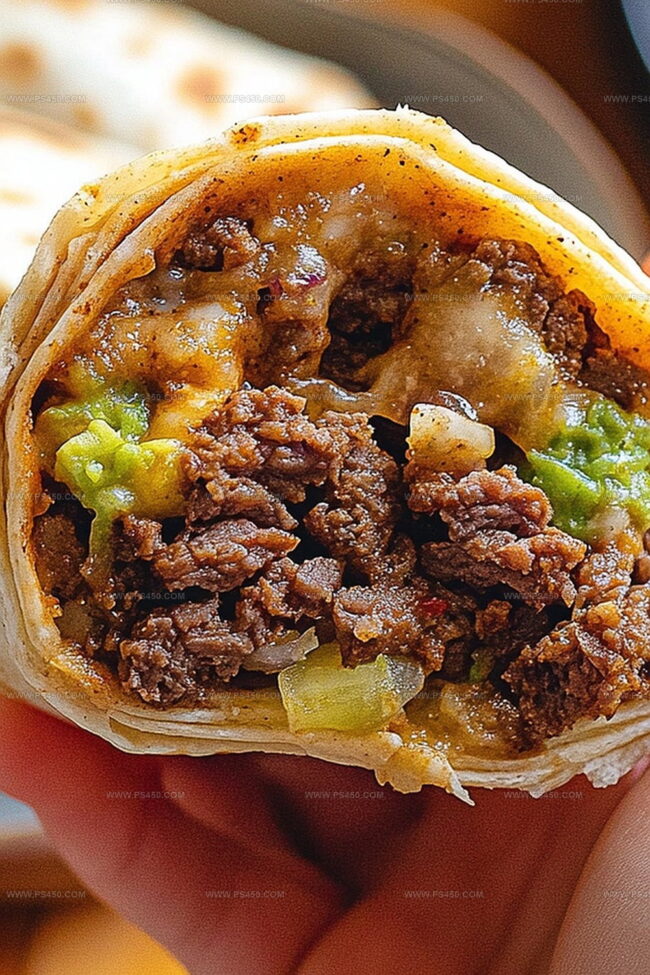Cheesy Ranch Fusion: Mix ranch seasoning into the beef filling. Add extra shredded cheese and drizzle ranch dressing on top for a tangy, creamy version of the classic burrito.