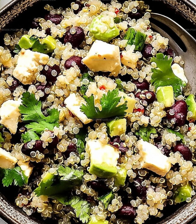 Delightful black bean quinoa salad dances with zesty Mexican-inspired flavors, combining protein-packed ingredients for a refreshing meal. Fresh herbs and tangy lime dressing invite you to savor each colorful, nutrient-rich bite of this wholesome southwestern-style dish.