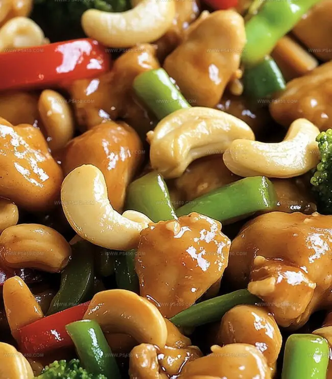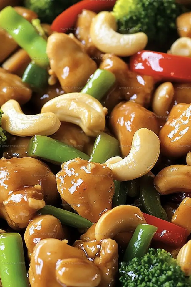 Crispy chicken pieces mingle beautifully with crunchy cashews, creating a delightful texture adventure.