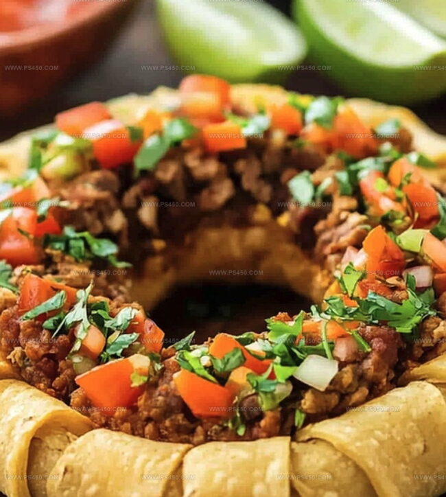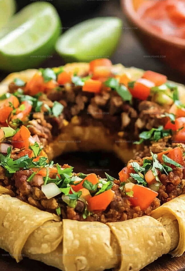 - Final Flourish: Allow the taco ring to cool briefly, then garnish with diced tomatoes, sliced olives, and chopped green onions. Serve alongside optional toppings like lettuce, sour cream, salsa, and guacamole for personalized enjoyment.