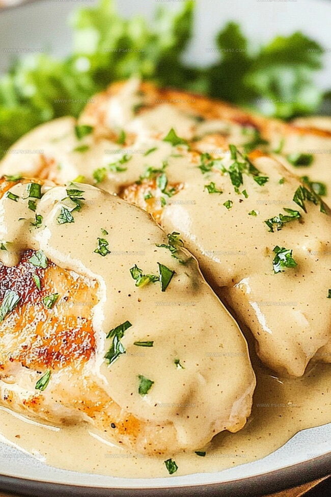 Tender chicken breasts bathed in a luxurious sauce promise comfort and sophistication on a single plate.