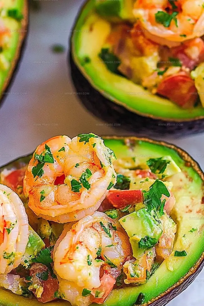 Carefully spoon the shrimp blend into each avocado half, ensuring a generous and even distribution. Top with a sprinkle of fresh cilantro or a bright lime wedge for an extra pop of flavor.