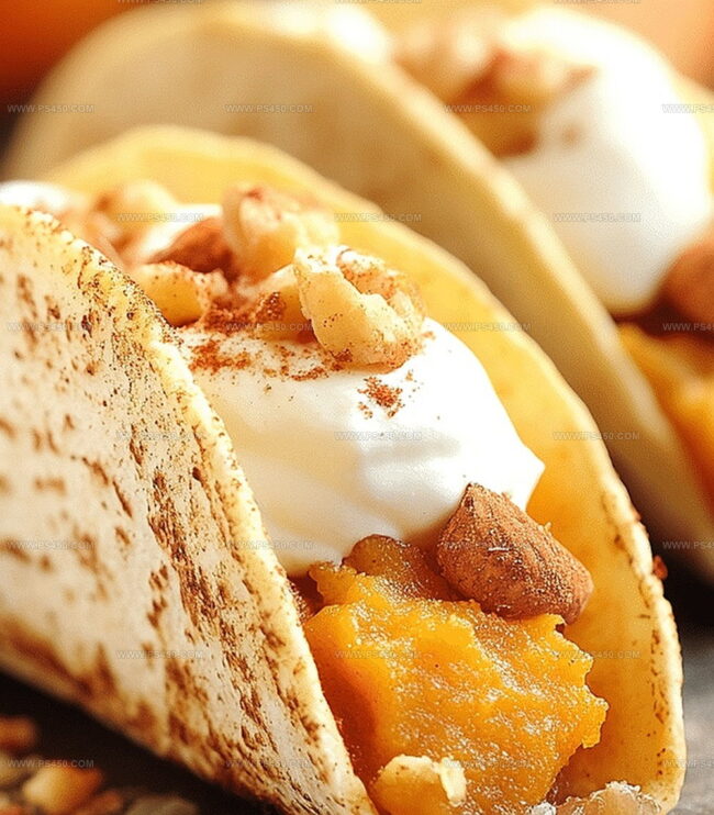 Seasonal Pumpkin Pie Tacos blend Mexican and American dessert traditions with crisp tortilla shells and creamy pumpkin filling. Delightful spices and sweet garnishes complete this unique cross-cultural culinary creation you will savor.
