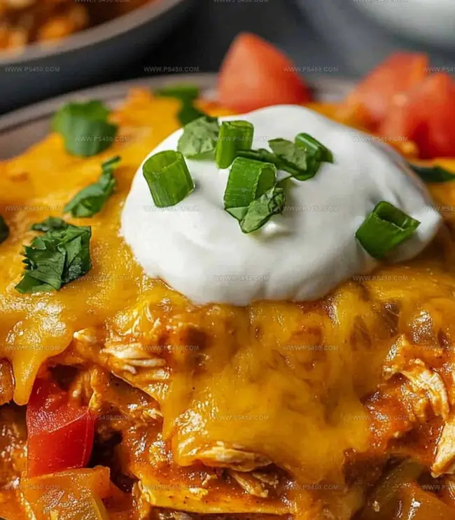 Prevent Dry Chicken: Add extra enchilada sauce or chicken broth to maintain moisture and prevent overcooking the chicken breasts.