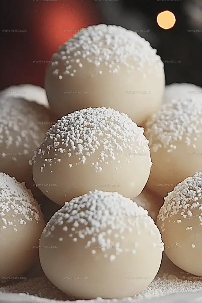 Gently roll each ball in powdered sugar until completely covered, creating a beautiful winter-like appearance.