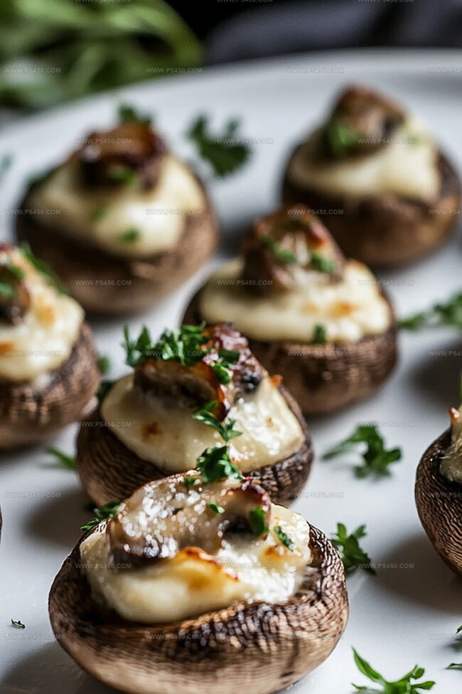 Creamy, rich filling nestles perfectly inside tender mushroom caps, creating a mouthwatering combination.