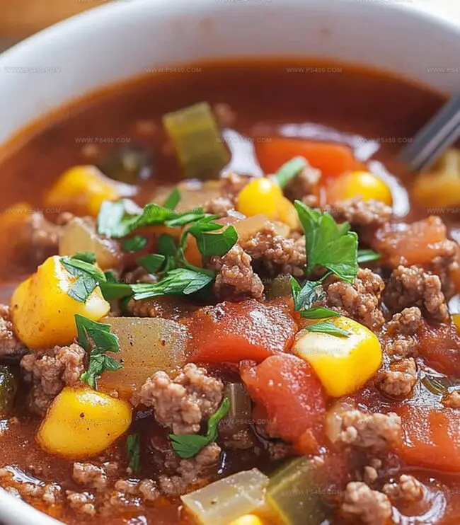 Hearty hamburger soup bursts with comfort during chilly evenings, promising a warm embrace in every spoonful.