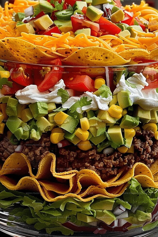 Layering flavors becomes an art form with this mouthwatering seven-layer taco salad that promises pure culinary excitement.