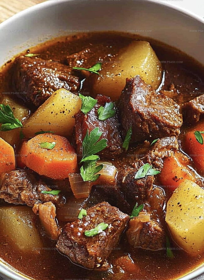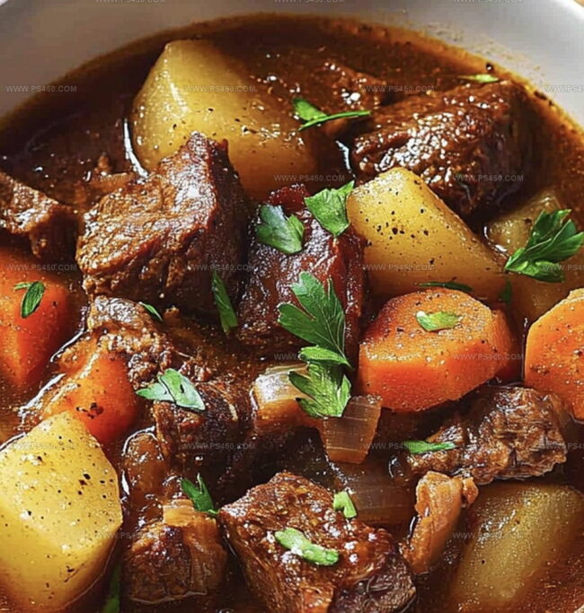 Robust beef mingles with soft potatoes and vibrant vegetables, creating a one-pot wonder that simplifies meal preparation.