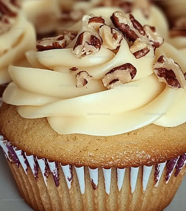 - Cupcake Finalization: Allow cupcakes to cool completely on a wire rack. Frost with elegant swirls of brown butter frosting, garnishing with additional toasted pecans for a decorative and textural accent.