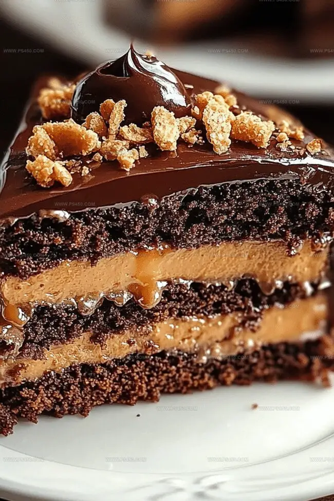 Sweet meets decadent in this chocolate caramel toffee crunch cake that promises pure indulgence.