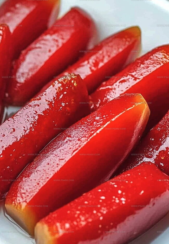 - After the marination period concludes, extract the brilliantly hued pickles and serve them chilled, revealing their transformed crimson exterior and uniquely sweet-tart flavor profile.