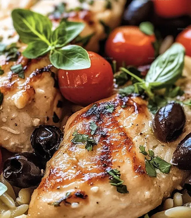 Remove the chicken from the skillet. Squeeze fresh lemon juice over the top, allowing the bright citrus to enhance the Mediterranean flavors.
