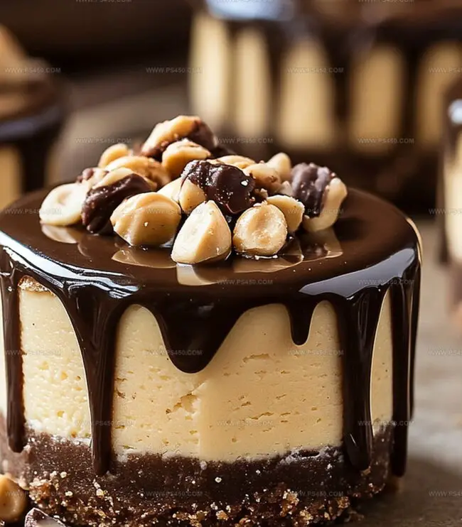 Indulgent mini peanut butter cup cheesecakes deliver creamy, rich elegance in bite-sized perfection. Sweet chocolate and peanut butter lovers will crave these irresistible individual desserts that promise pure bliss with each delectable bite.
