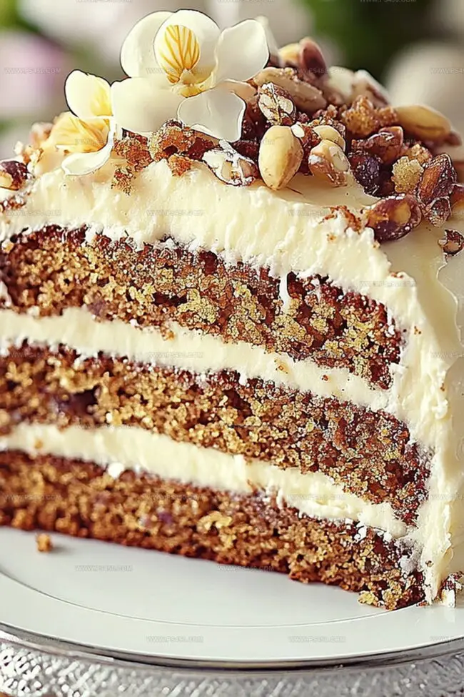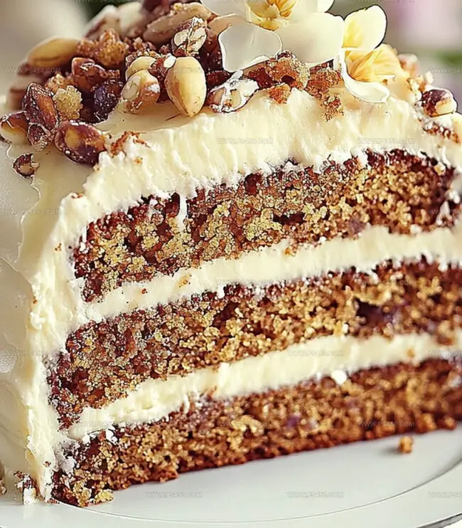 - Cake Assembly: Carefully layer cakes, spreading frosting between each tier. Generously coat entire cake with cream cheese frosting, creating a polished and appetizing final presentation.