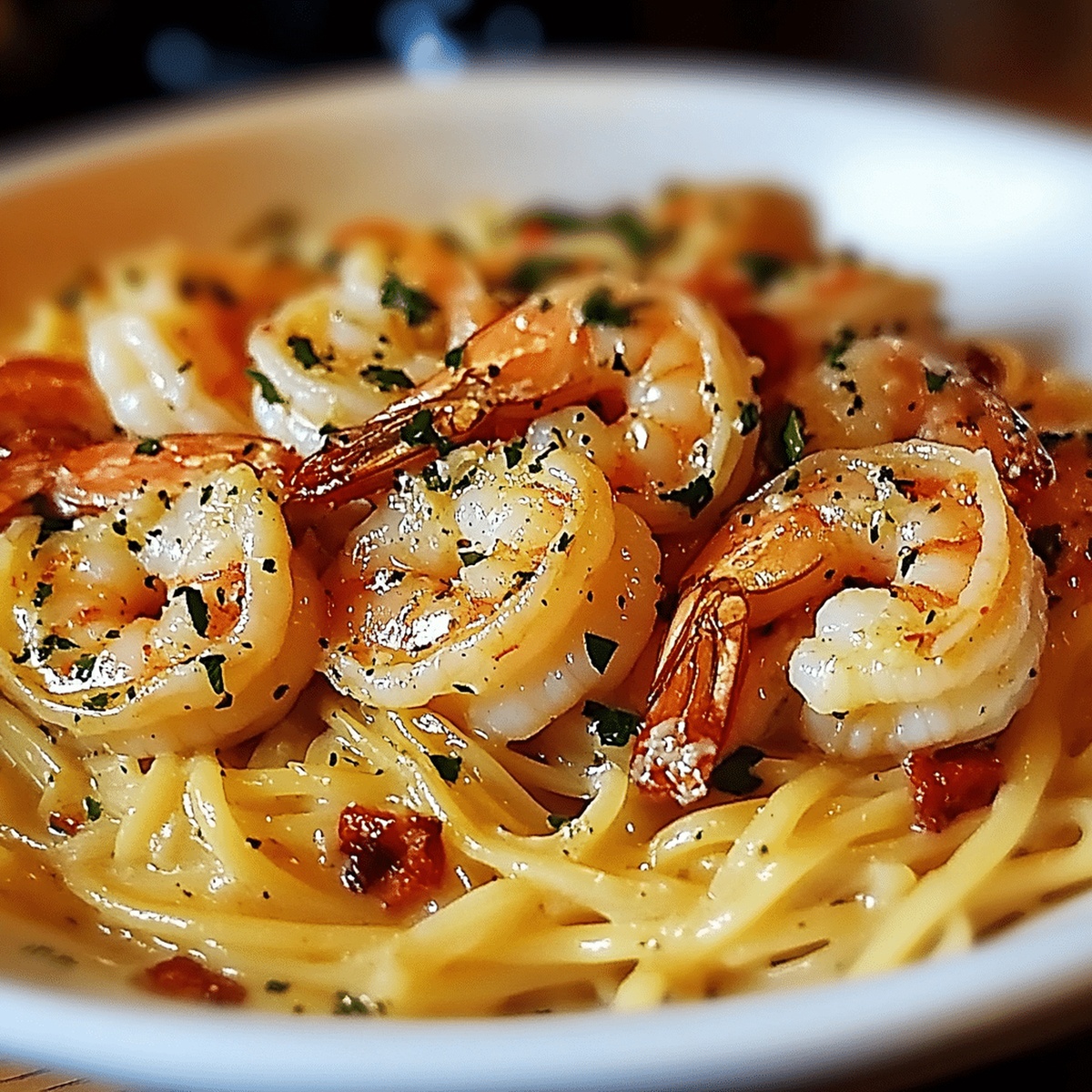 Tender shrimp nestle in a silky sauce that whispers of coastal elegance and home-cooked comfort.