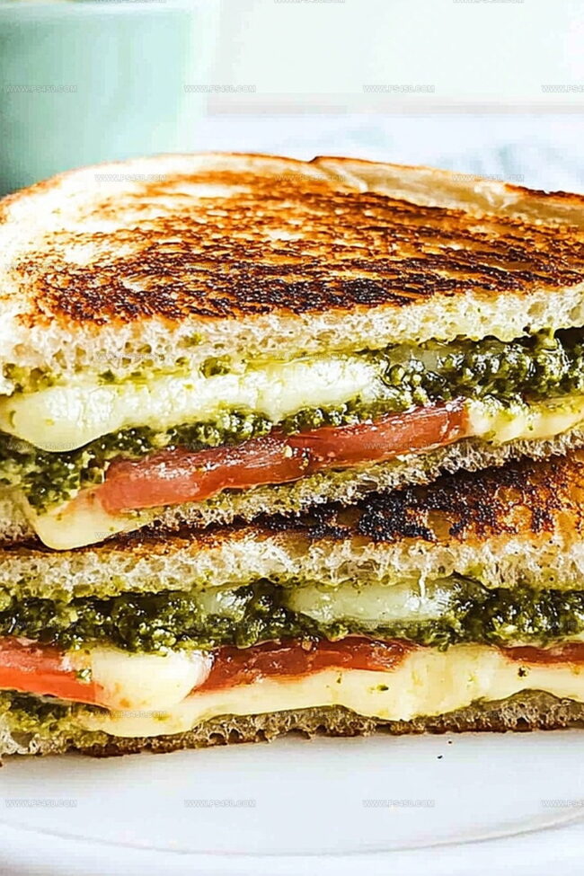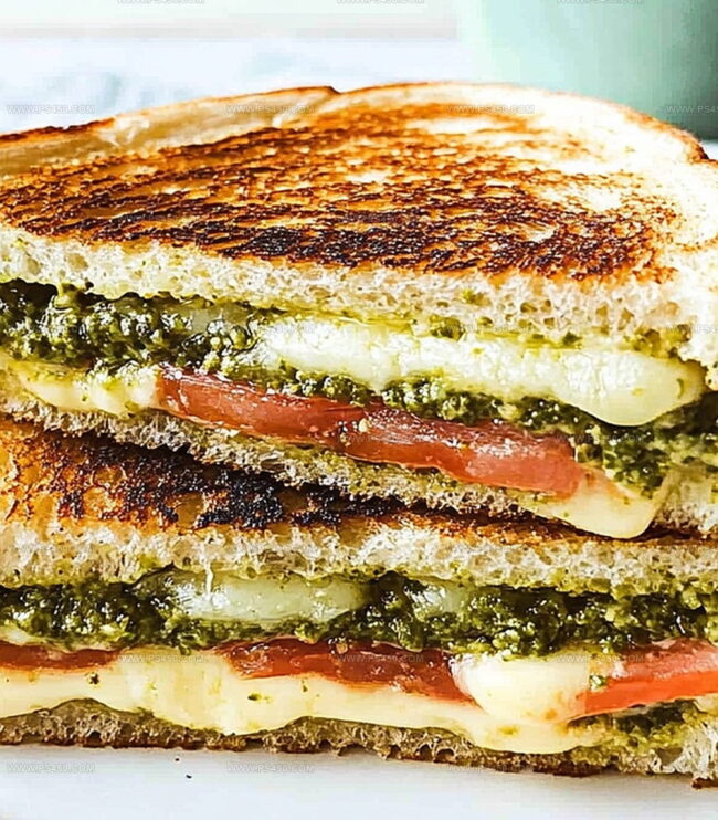 Comfort meets Italian flair in this irresistible Pesto Grilled Cheese, blending creamy mozzarla and fresh basil pesto between golden, crispy sourdough bread. Melted cheese and herbaceous notes create a simple yet sophisticated sandwich that satisfies lunch cravings with Mediterranean-inspired elegance.