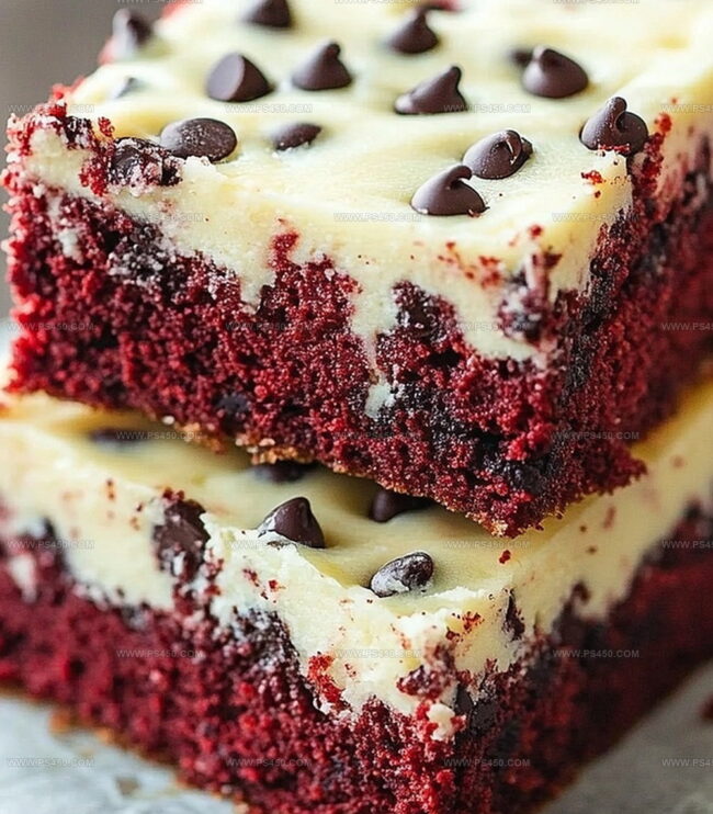 Indulgent red velvet chocolate chip cheesecake bars blend luxurious flavors into a single, irresistible dessert. Rich chocolate and creamy cheesecake layers promise pure dessert bliss that will make you weak in the knees.