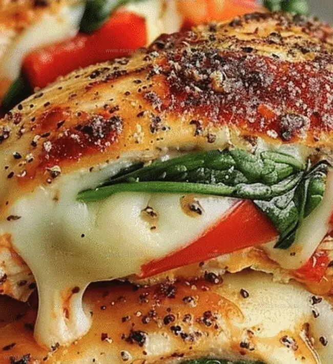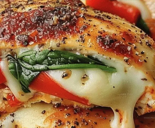 This recipe combines the sweetness of roasted red peppers, the earthiness of spinach, and the creamy richness of mozzarella cheese, creating a flavor-packed chicken dish that’s both nutritious and delicious.