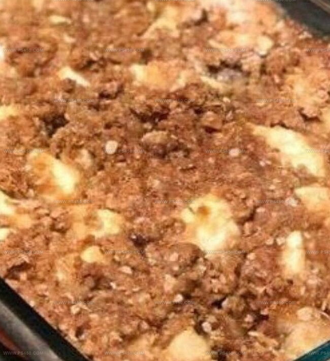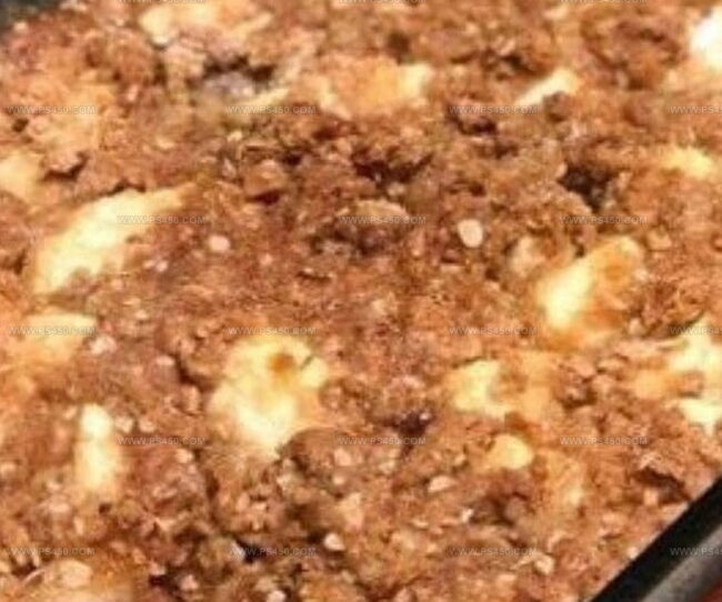 - Assembly: Distribute the crumbly topping generously and evenly over the apple layer, covering the entire surface to create a textural contrast.