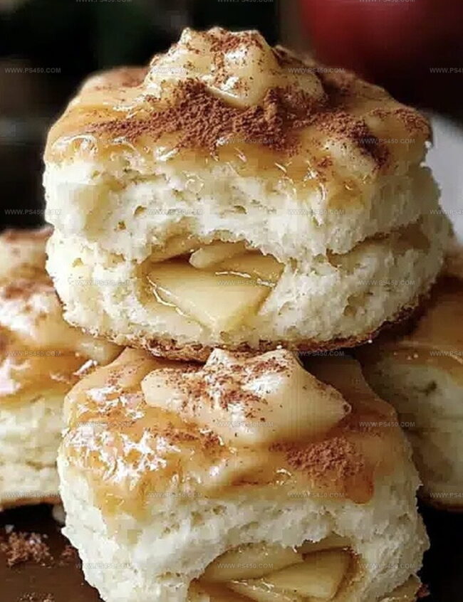 Warm, golden biscuits studded with cinnamon-spiced apple pie filling offer a delightful twist on classic comfort food.