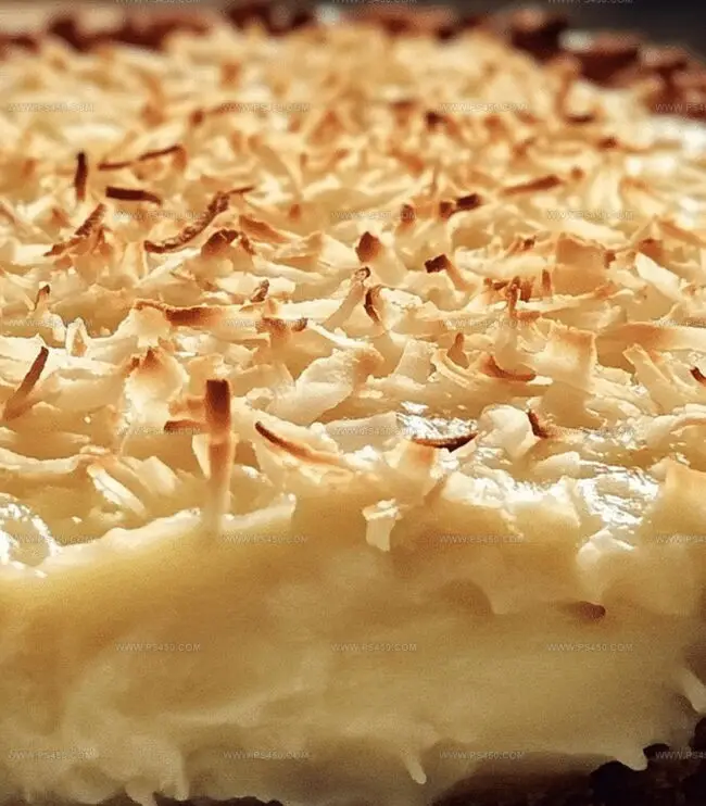 Grab a big mixing bowl and dance your whisk through sugar, melted butter, milk, eggs, vanilla, flour, and salt until everything blends into a silky smooth mixture. Fold in shredded coconut for that tropical twist.