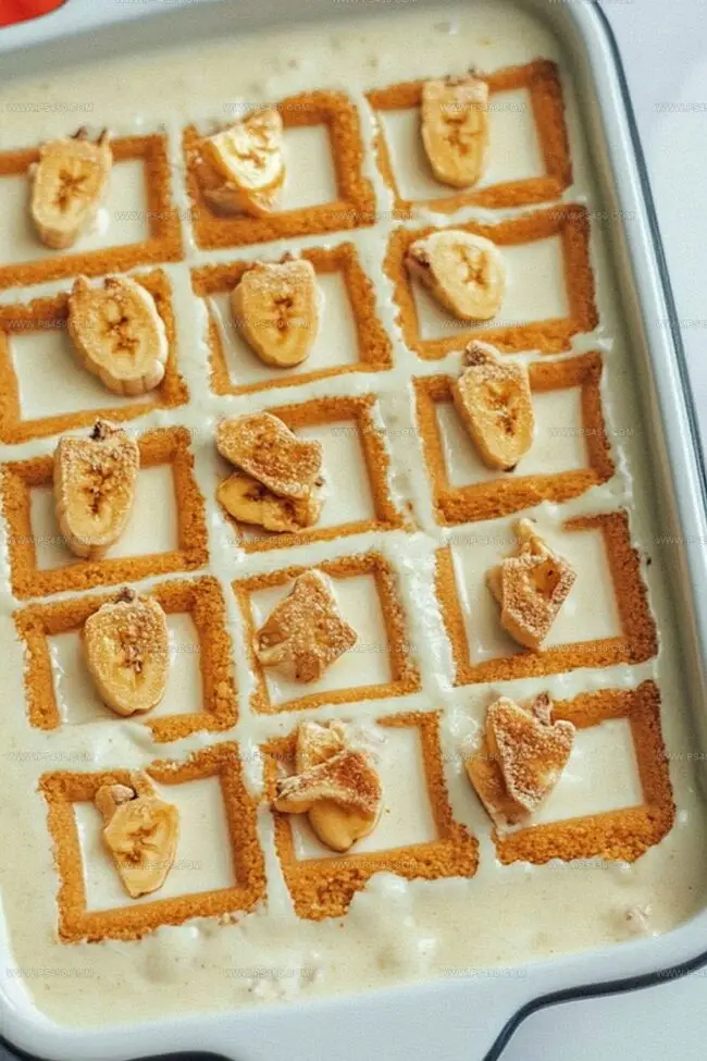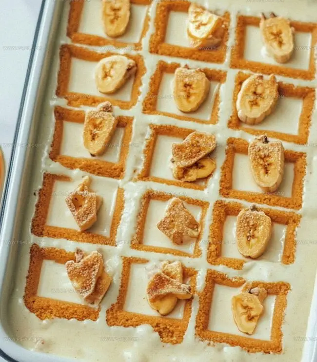 - Pudding Cascading: Pour pudding mixture strategically over banana layer, spreading with precision to reach every corner of the dish.