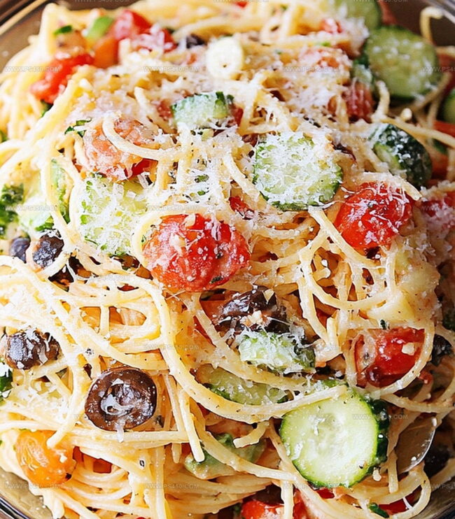 Mediterranean charm meets crisp salad ingredients in this vibrant spaghetti salad that breaks all traditional pasta expectations.