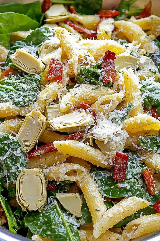 Pasta Base:Vegetables and Greens:Dressing Components:Cheese and Seeds:Seasoning:Steps To Make Spinach And Artichoke Pasta Salad