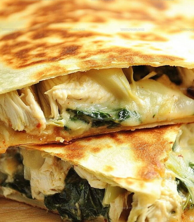 Hearty spinach artichoke and chicken quesadilla blends Mexican and creamy comfort flavors into one irresistible dish. Melted cheese, tender chicken, and zesty seasonings create a quick meal packed with bold, satisfying textures you’ll crave again and again.