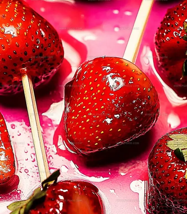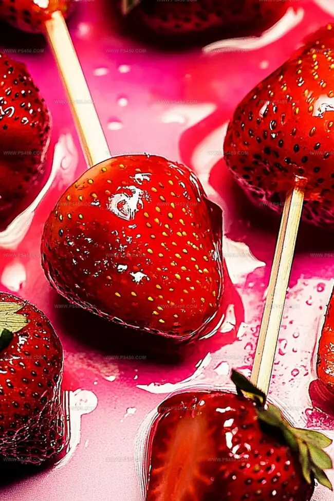 Crisp sugar shells envelop juicy strawberries, creating a mesmerizing contrast of textures.