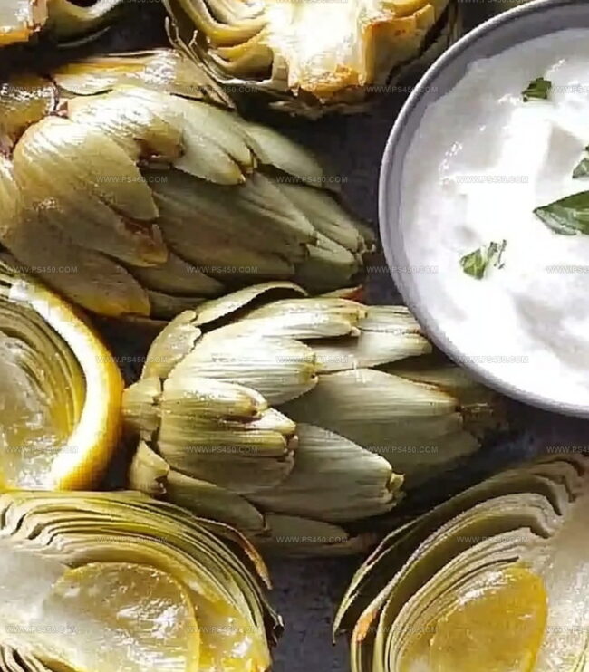 Artichokes bring a delightful twist to appetizers with their tangy artichokes with lemon-yogurt dip waiting to tantalize your taste buds.