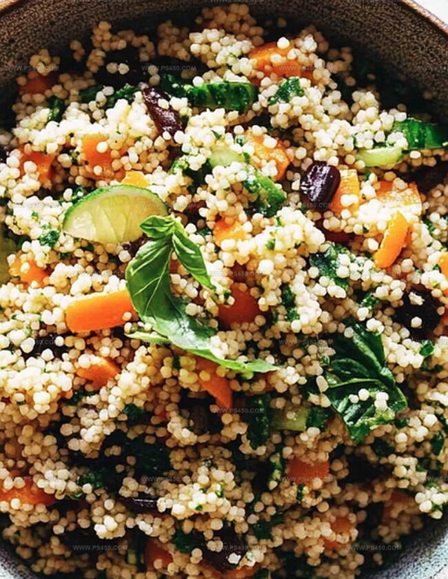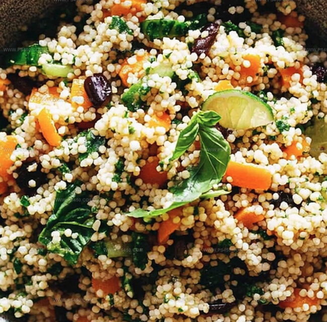 Mediterranean Moroccan couscous salad with lime basil vinaigrette brings tangy freshness to summer dining. Delicate pearls of grain blend with crisp vegetables, creating a light and zesty side dish you’ll crave at picnics and potlucks.