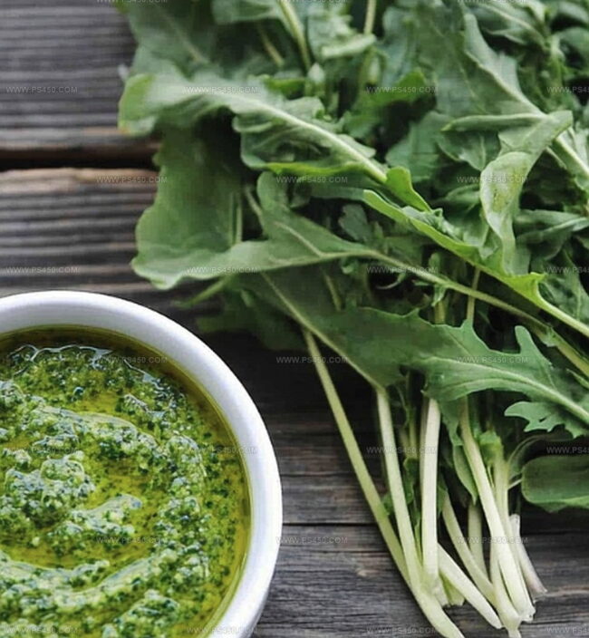 Garden-Fresh Pasta Partner: Toss this vibrant dandelion pesto with hot linguine or spaghetti for a zesty, herb-packed meal that bursts with fresh flavors.